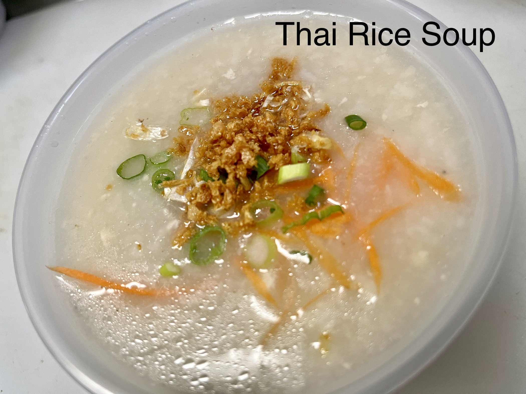 Very Asian style rice soup with ground chicken, garlic and green onion.